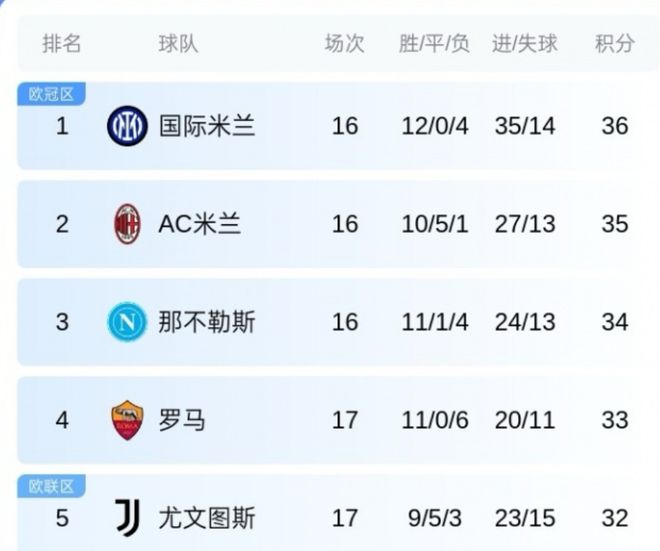 意甲第17輪羅馬3-1熱那亞升第四。2025年意甲賽程全部結束,國米榜首收官,米蘭第二,那不勒斯第三,尤文第五。最新積分榜如下: